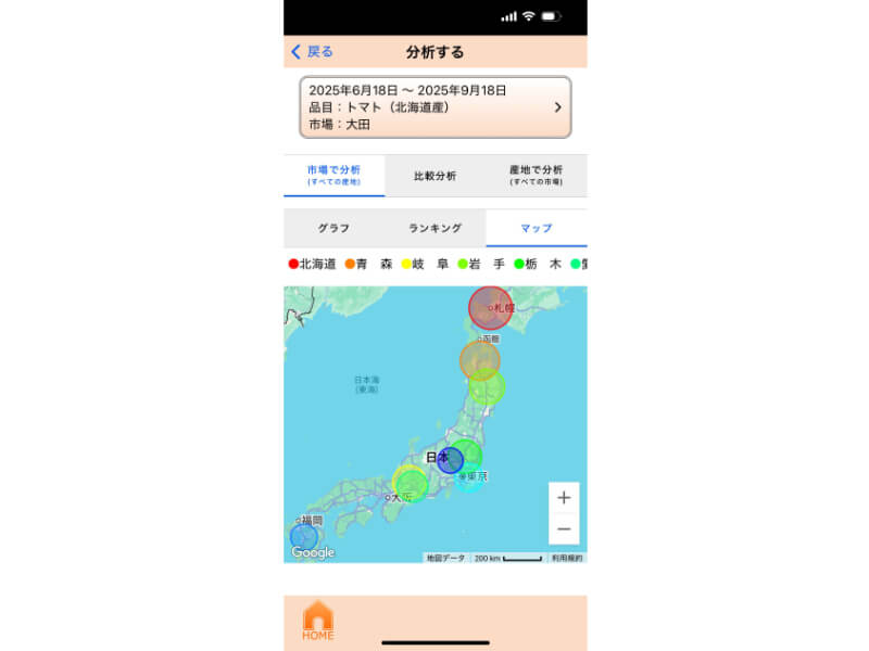 ⑤ 青果物の流通量が視覚的に確認できる地図