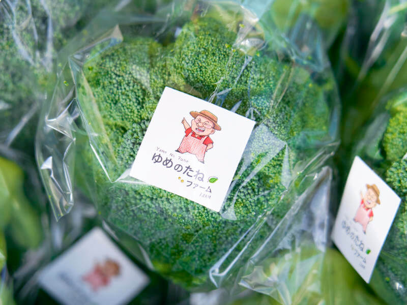 髙木さんが出荷する野菜の包装材には、同人のイラストも。知人のイラストレーターが手がけたものだそう。