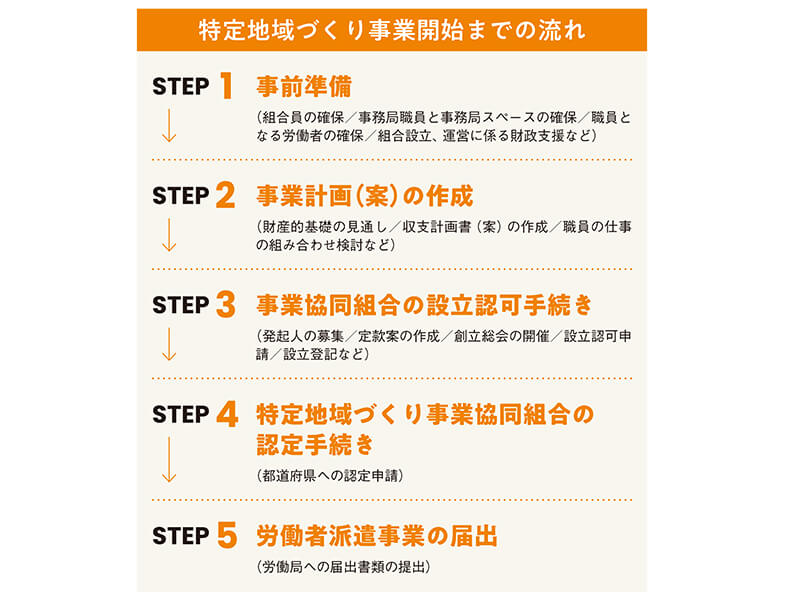 また、特定地域づくり組合の結成や運営にあたっては、農協、商工会議所、商工会といった関係事業者団体および市町村と連携・協力することが求められる。事前準備の段階から、これらの団体にしっかりと相談するのが大切だ。