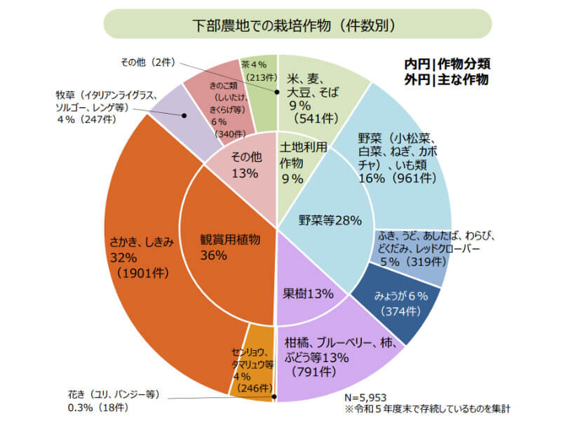 その一方で、不適切な事例として、毎年の収穫に適さない観賞用植物(サカキ、シキミなど)や、遮光率制限により栽培が難しくなる品目(ミョウガ、キノコ類など)は「望ましくない」位置づけとなる。