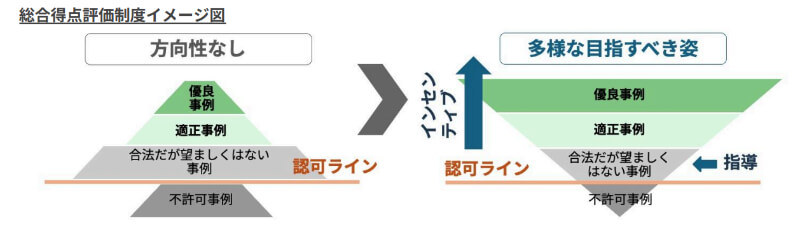 一般社団法人ソーラーシェアリング推進連盟では、不適切な事例を排除しつつ、優良なプロジェクトを育てるための「総合得点評価制度」の導入を提案している。