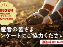 生産者様限定で、バイオスティミュラント資材に関するアンケート調査を実施中。アンケートに答えていただいた方の中から、先着で50名様にAmazonギフト券をプレゼント。ぜひ、ご協力ください!