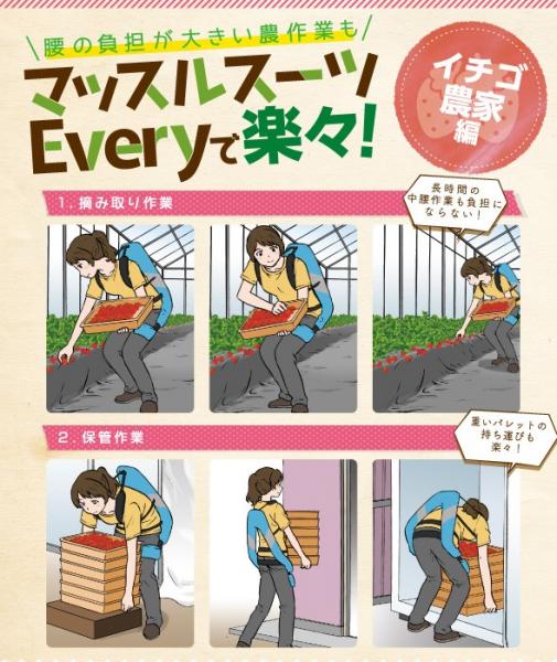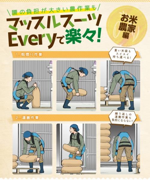 電力不要、野外での作業に活用可能な腰を補助する『マッスルスーツEvery』のメーカーです。『マッスルスーツEvery』は、シリーズ累計10,000台を超え、装着型ロボットスーツのリーディングカンパニーとなっております。農水省推進の「スマート農業」にも含まれる注目のアシストスーツをご検討なら、是非「マッスルスーツEvery」をお試しください!