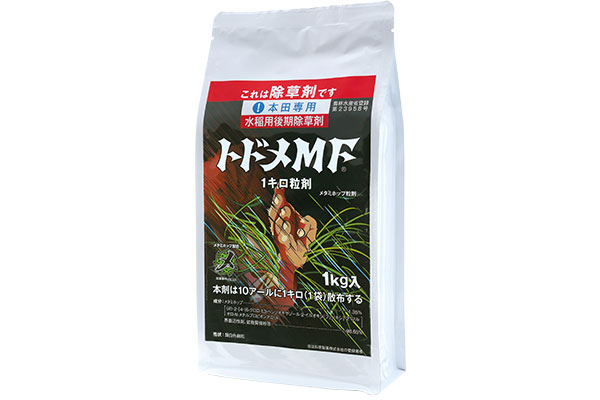 「トドメMF剤」の日本国内における普及活動を円滑に行う目的で、2017年設立。現在、科研製薬、三井化学アグロが加入しています。1キロ粒剤、乳剤、混合剤と充実したラインナップで発生雑草、散布時期のニーズに対応、ノビエなどの雑草問題を解決します。