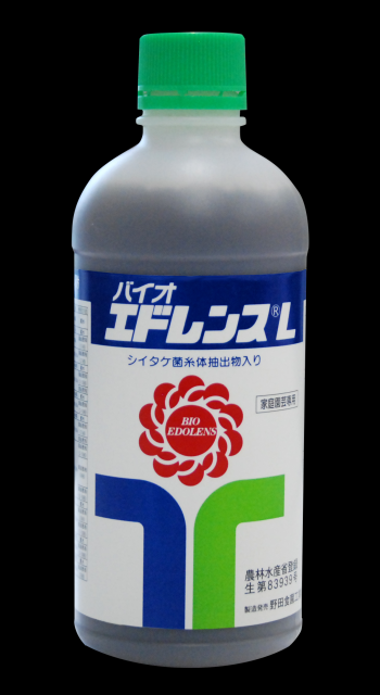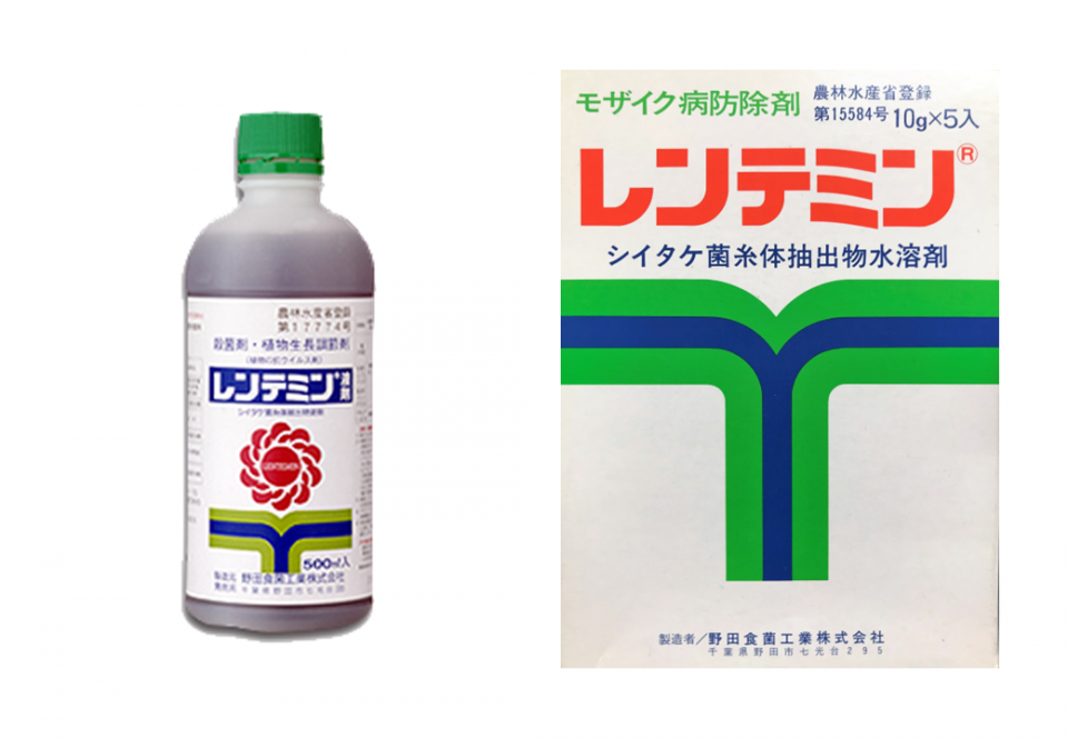 シイタケ菌糸体抽出物を有効成分とするウイルス病防除・植物調節剤。モザイク病を発現するウイルスの感染防止剤で国内唯一の農薬登録剤です。