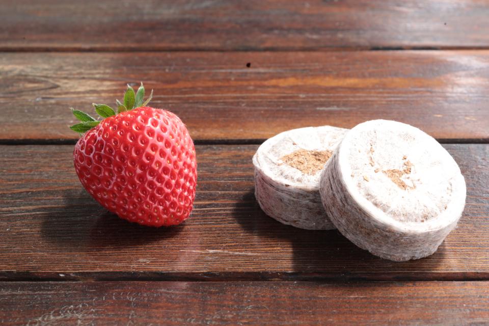 今イチゴ生産者の間で話題?の資材「ジフィーセブンC」は、良質なココピート100%を圧縮して固化し、生分解性不織布で包んだ培養土で、イチゴの採苗に最適です。根鉢ができにくく、根の伸長・活着を早めるうえ、省力・省スペースにもつながる画期的な資材、是非お試しください!