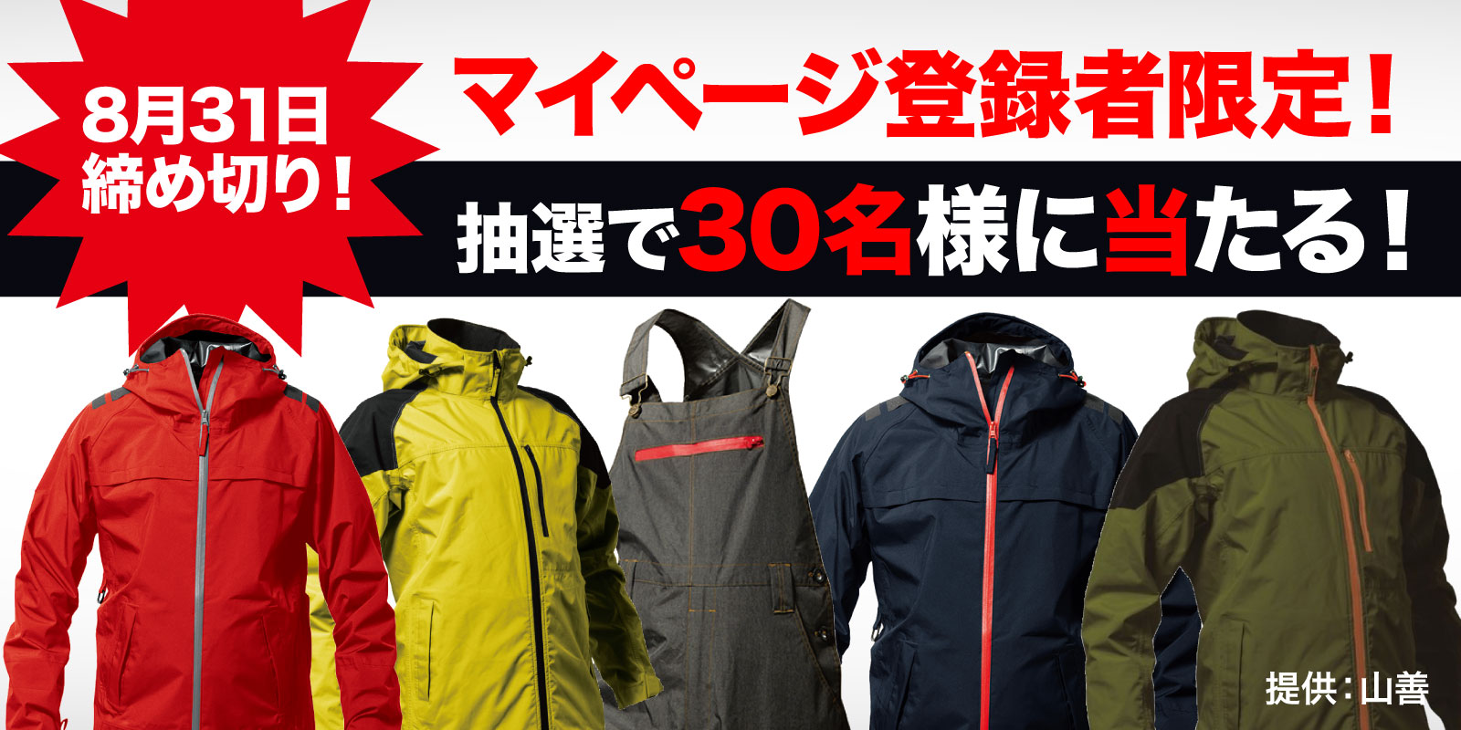 マイページ登録した方は、抽選で30名様に山善の農業ウェアが当たる「特別アンケート」にご参加いただけます。2020年8月31日までにマイページ登録した方限定のキャンペーンとなりますので、奮ってご参加ください!