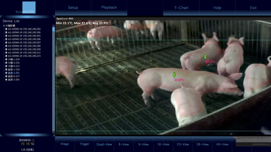 Heat Finderはネ ットワークを介して、いち早く熱源を通知できます。すべての豚の体温変化を自動的に追跡し、異常体温が検出された場合、交差感染を防ぐために直ちに管理者に知らせます。