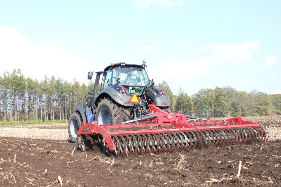 本機の最大特徴は直径560㎜・厚さ6㎜の大型ディスク。砕土効果の高いオフセット型です。砕土・反転の作業効率が良い特殊形状のディスクでより深く土壌に入り込み、理想的な砕土をもたらします。またフローティングシステムを利用しての深度調整も可能です。ラインナップは直装式のXXLと直装式油圧折畳型XXLHの2モデルです。