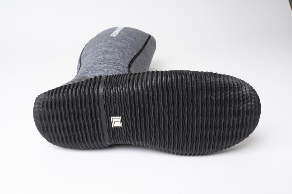 柔らかくて脱ぎ履きのしやすいフィット感のある長靴、ヒールのないフラットな靴底なので足場に跡(穴)が残りにくく、