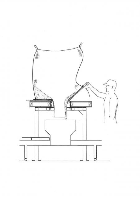 ②1㌧フレコンバッグを「フレコンサポートテーブル」に乗せてしまえば、