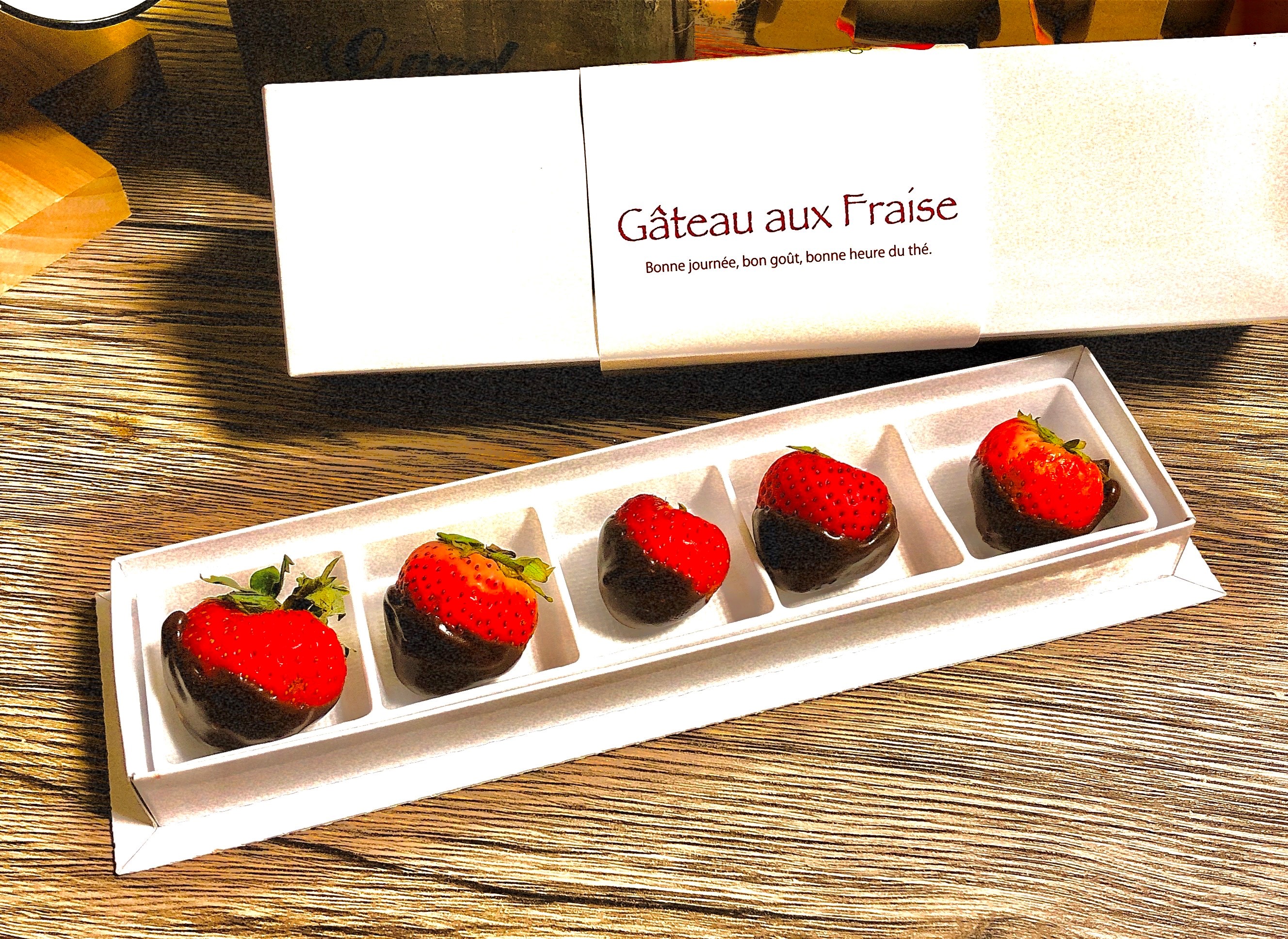 生の苺をそのままチョコにくぐらせてスイーツに大変身。新鮮であるが故に出来るスイーツの函のご提案をさせて頂きました。