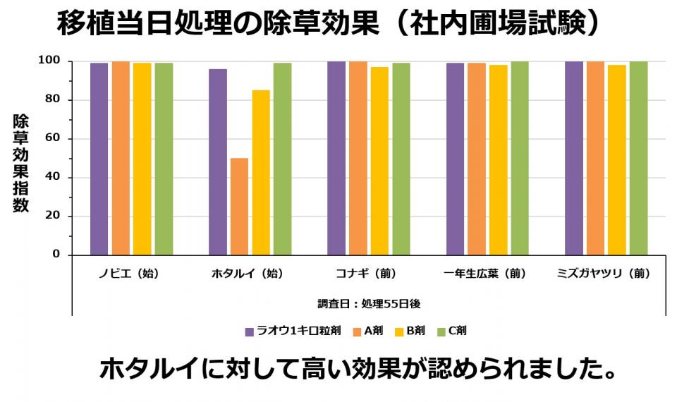 水稲安全性が高く、田植同時処理や直播水稲でも使用できます。低コストで使用できるのも特徴です。