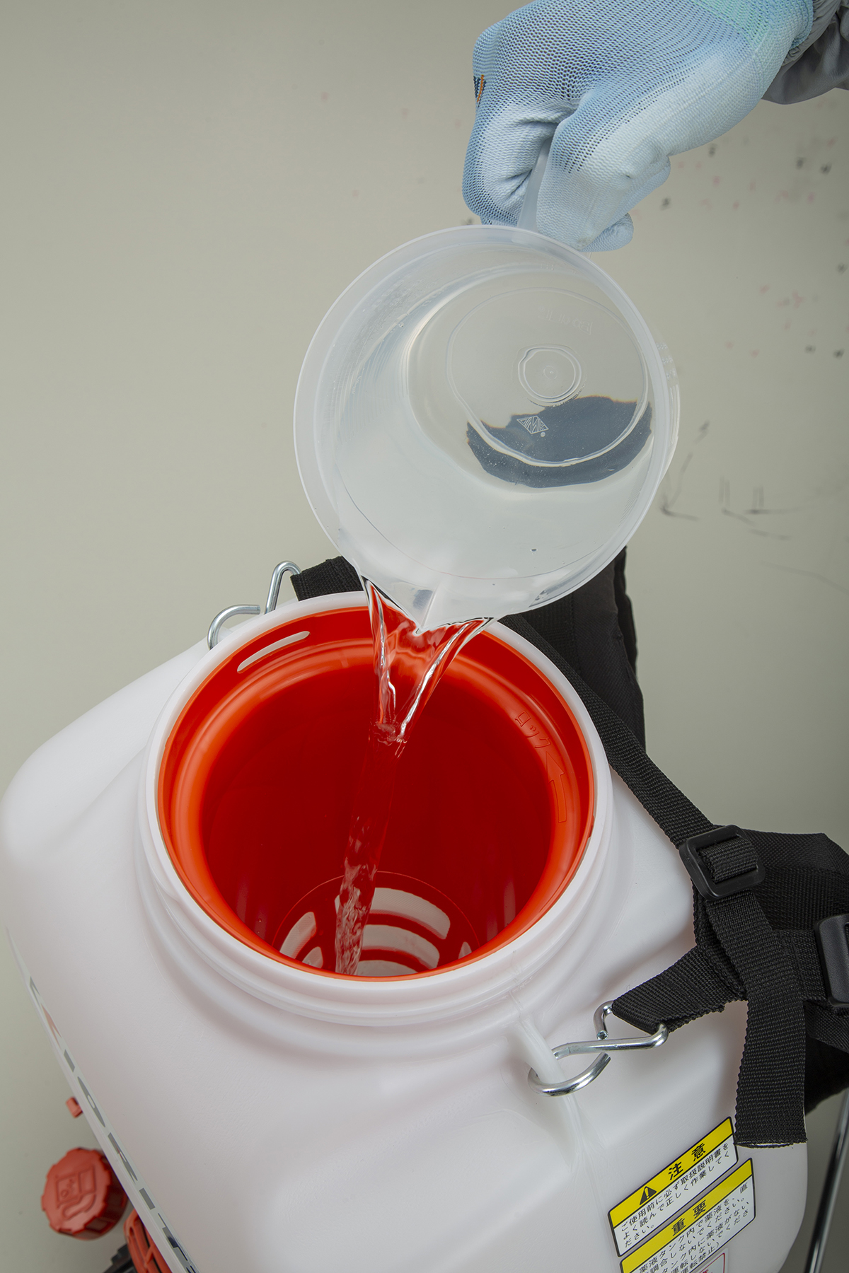 薬液の揺れを抑えるスタビライザーに濾し網が一体化。薬液補充時の液の跳ね返りが少なくなりました。