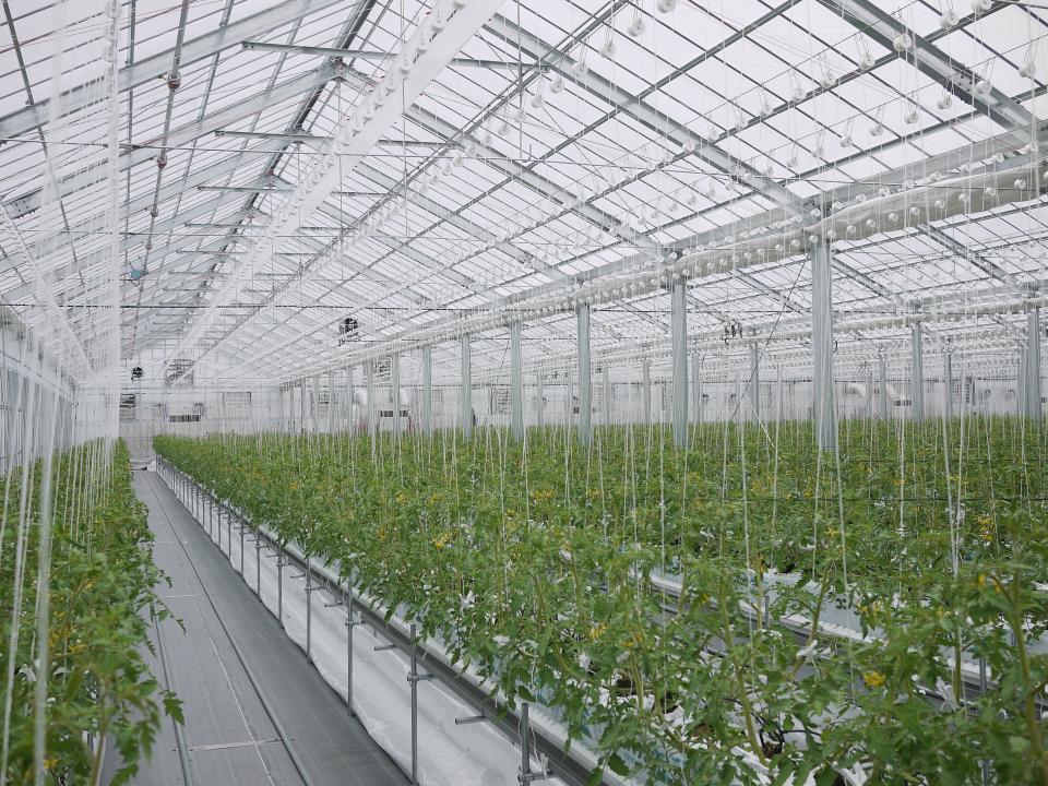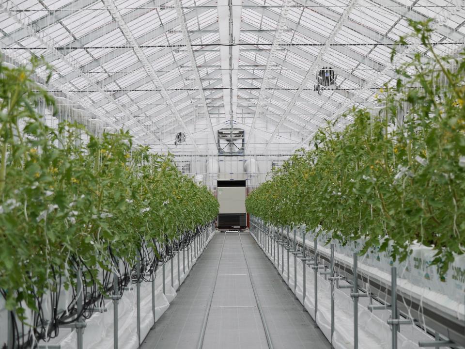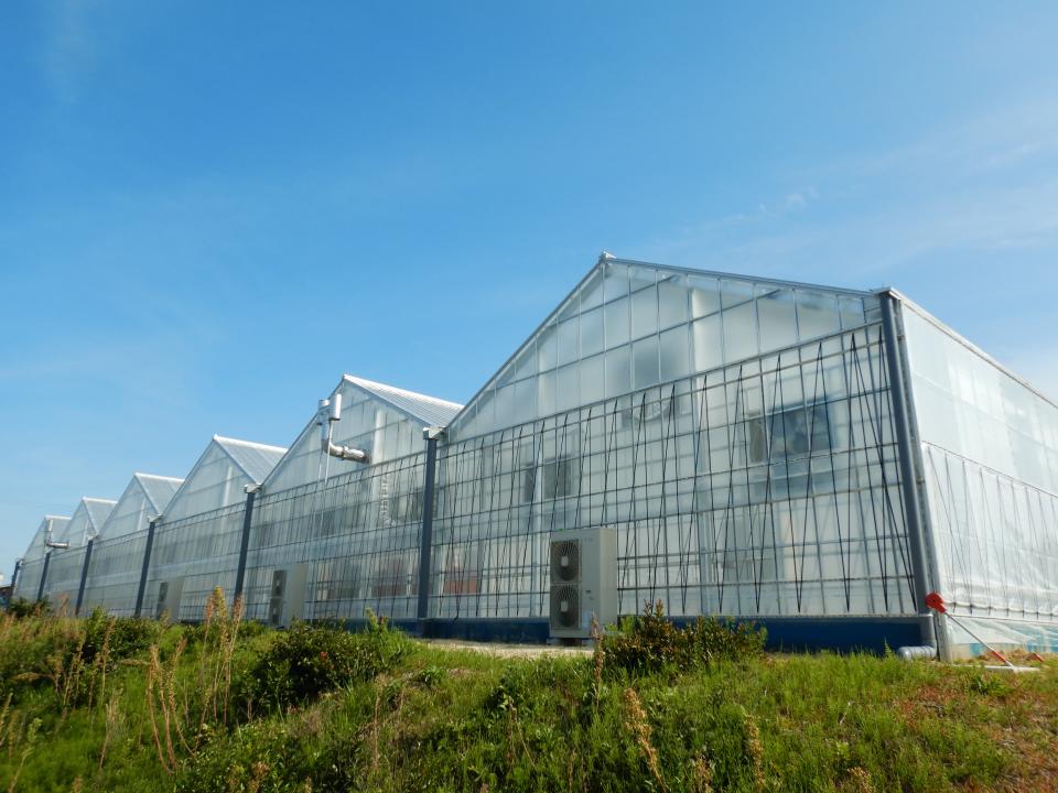 高度な環境制御に特化した専用設計ハウス。実証に基づき、天候の影響を受けにくい均一な温室環境を目指しました。
