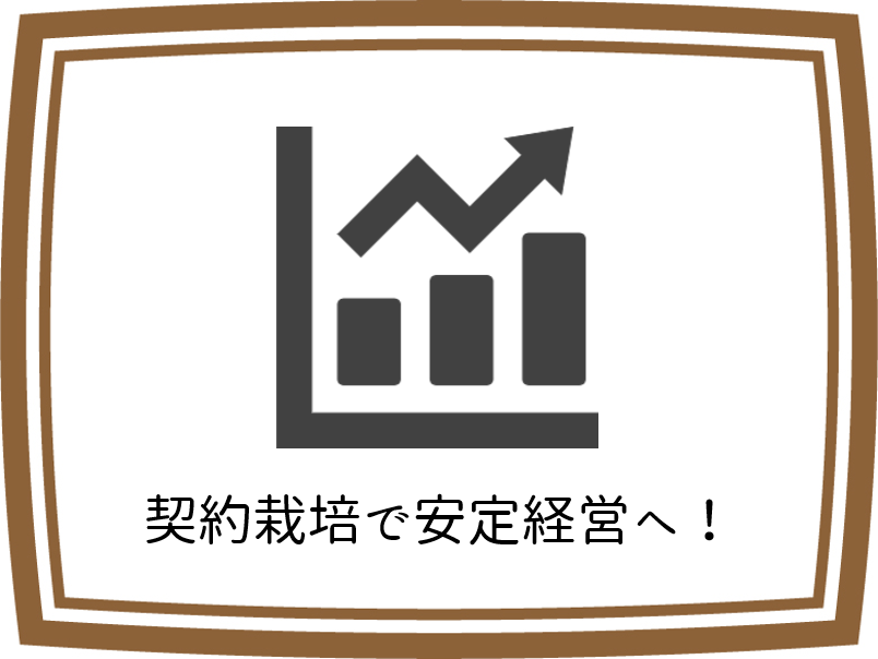 「銘柄」・「価格」・「数量」をあらかじめ決めた契約栽培により、計画的な生産・経営の安定化をサポートします。