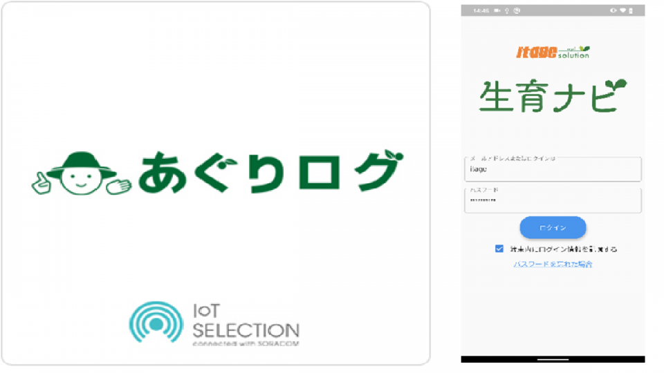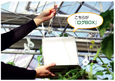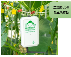 (株)IT工房Zの「あぐりログ」は軽量専用ログBOXをぶら下げるだけで設置できる環境モニタリングサービス。温度・湿度・CO2濃度などPC・スマホから確認できます。「生育ナビ」は「あぐリログ」と連携しており、「あぐりログ」利用者は「生育ナビ」との併用により、「生育ナビ」のスマホ画面で環境情報と生育情報とを同時に閲覧可能となります。環境と生育の2つの角度から農業をサポートします。