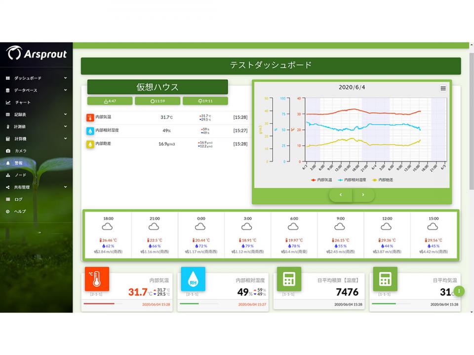 サカタのタネが提供する低コスト型環境制御システム「アルスプラウト」。