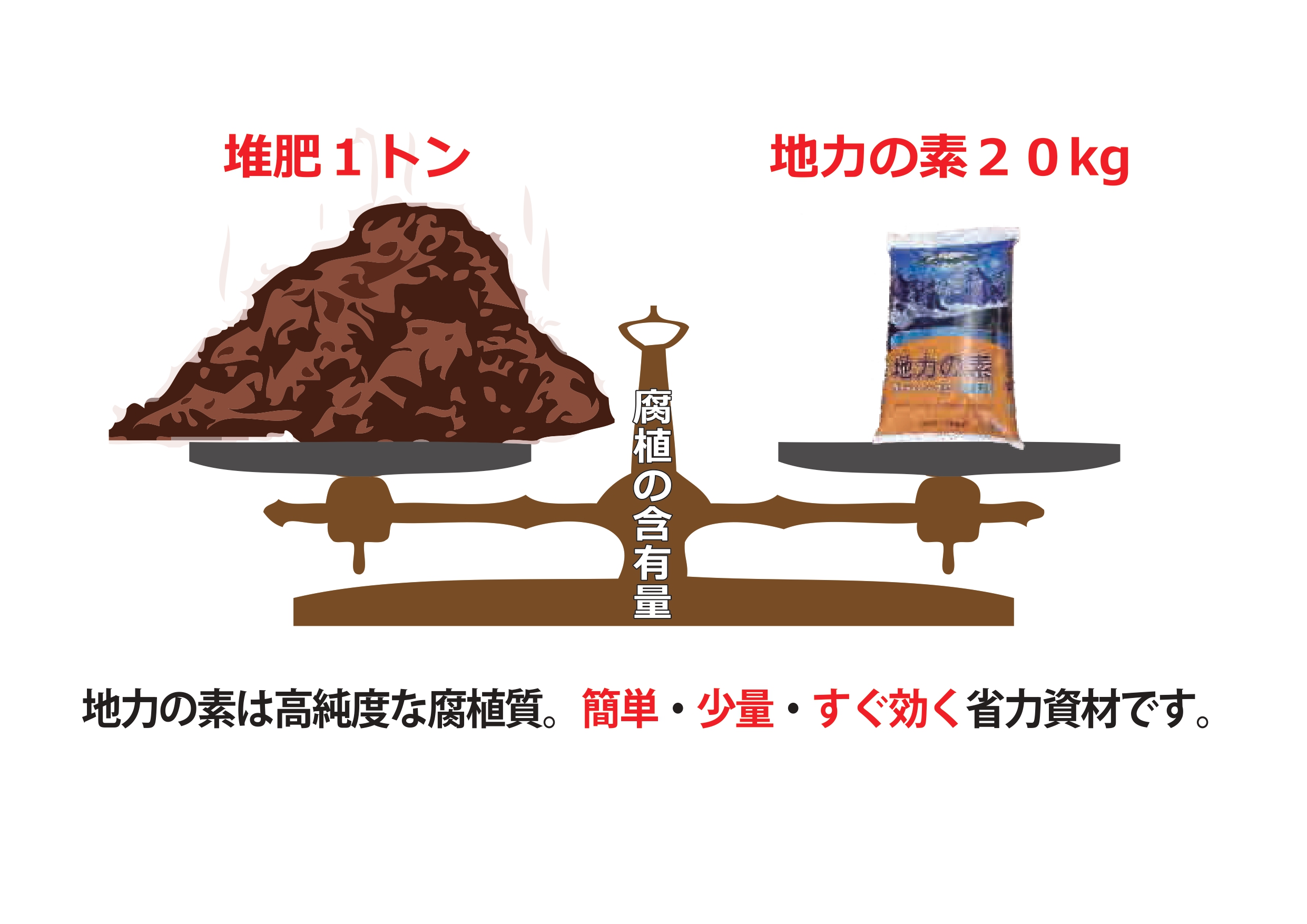 1袋(細粒・粗粒タイプ)で堆肥1トンに相当し、簡単・少量・すぐ効く省力資材です。