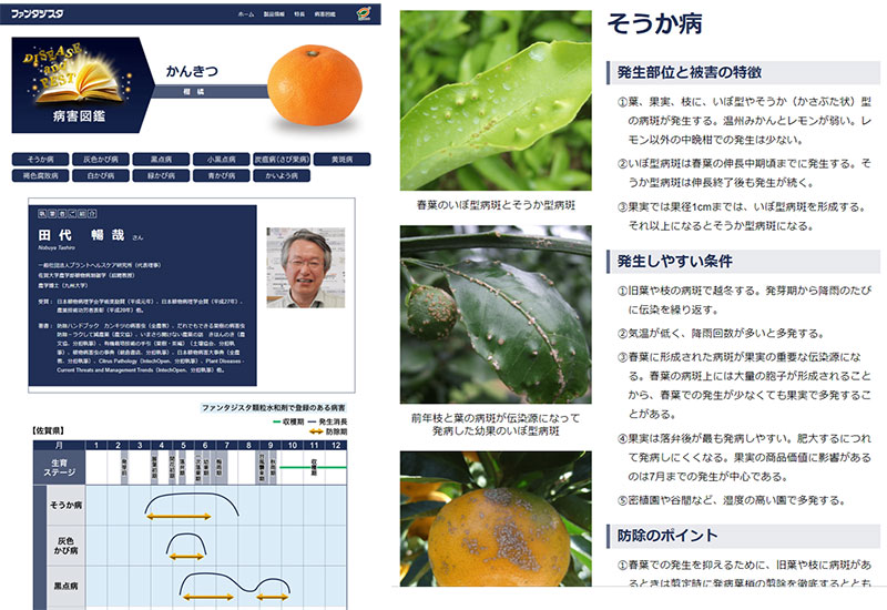 ファンタジスタ®の特設サイトでは、作物ごとのプロフェッショナル監修の病害図鑑を公開中!