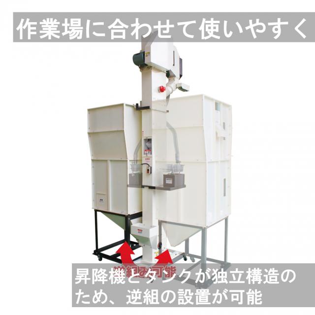 低型で柔軟なレイアウトが可能な自動計量ユニットです。作業場に合わせて昇降機やタンクを組み替えが可能です。シュート出口に自動シャッター機を取り付けたことで、より正確な計量を実現しました。※製品のご購入に関しては、お取引のある農機販売店 / JAにご相談ください。