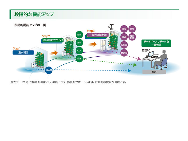 ●地上部・地下部の環境を総合的に制御し、適切な潅水管理を実現します。