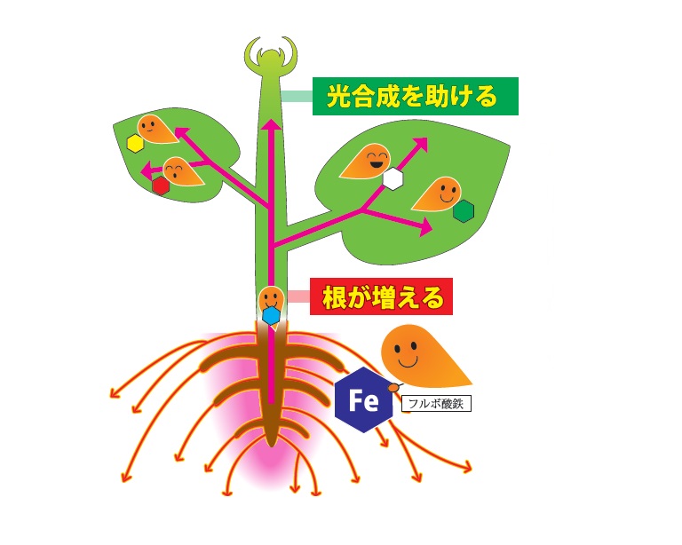 植物に最適なキレート作用鉄をはじめとしたミネラルをフルボ酸がキレートし、供給します。