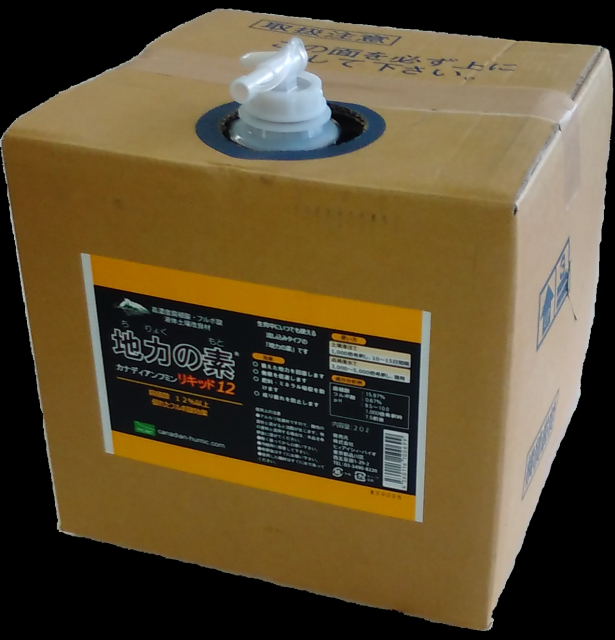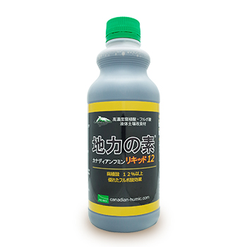 「カナディアンフルボ」:カナディアンフミン原鉱から独自の技術によりフルボ酸を抽出・濃縮した植物活性液です。希釈して葉面や土壌に散布することで土と植物を活性化します。