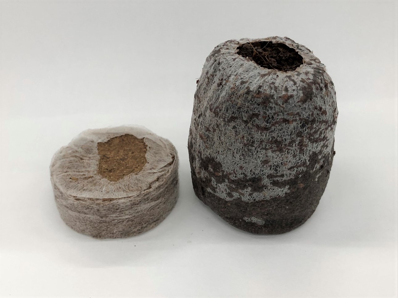 良質なココピート100%を圧縮して固化し、生分解性不織布で包んだ培養土です。水をかけるだけで3~5倍に復元し、土入れ作業の必要がありません。ポット苗に比べて省スペースで管理できるので、より多くの苗を養生できます。