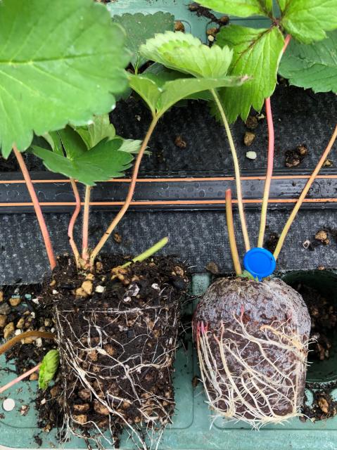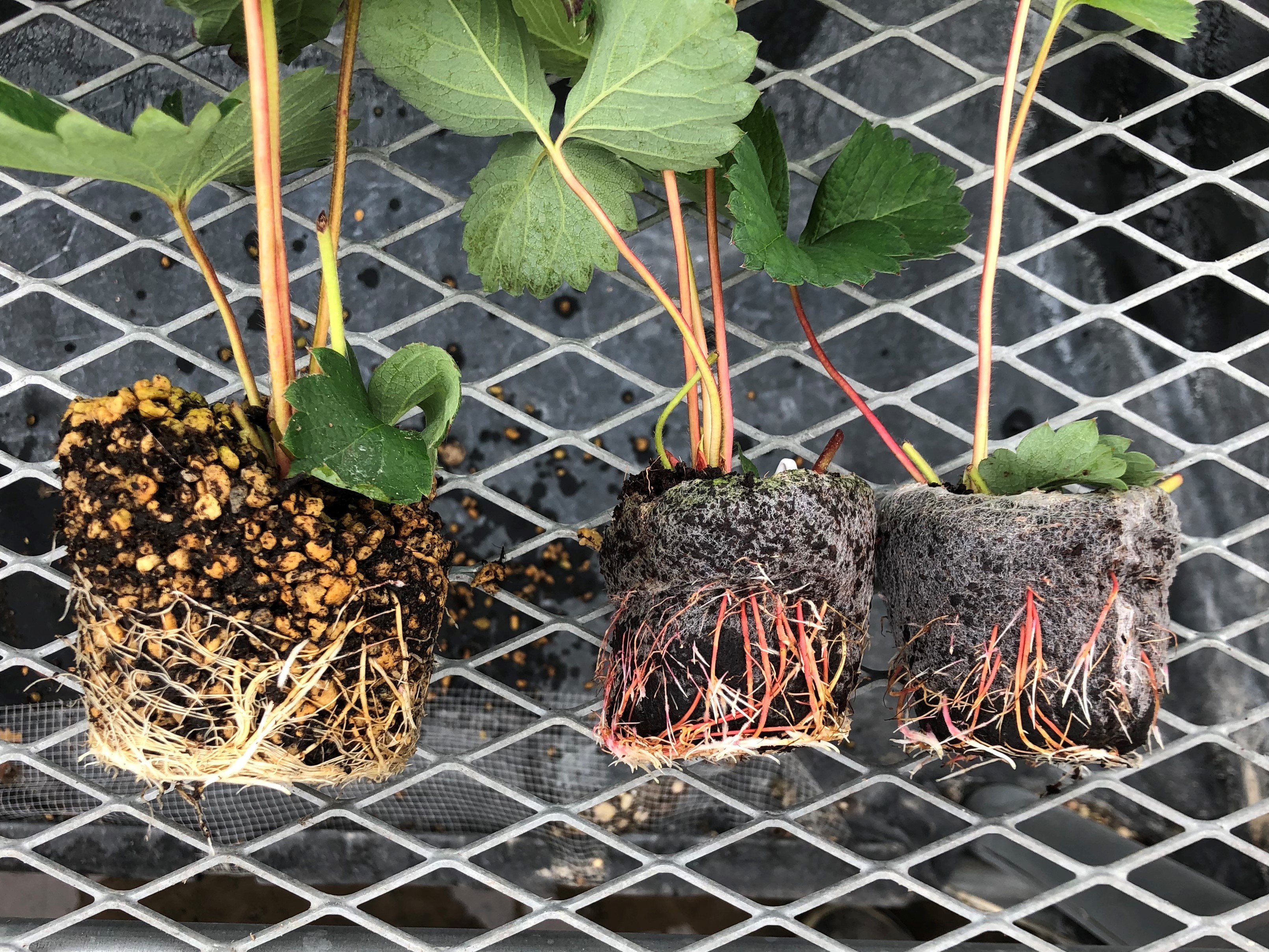 また、定植前の根張りのチェック時に培地が裸のため発根が目視できるので植え時の判断が即座にできるメリットがあります。