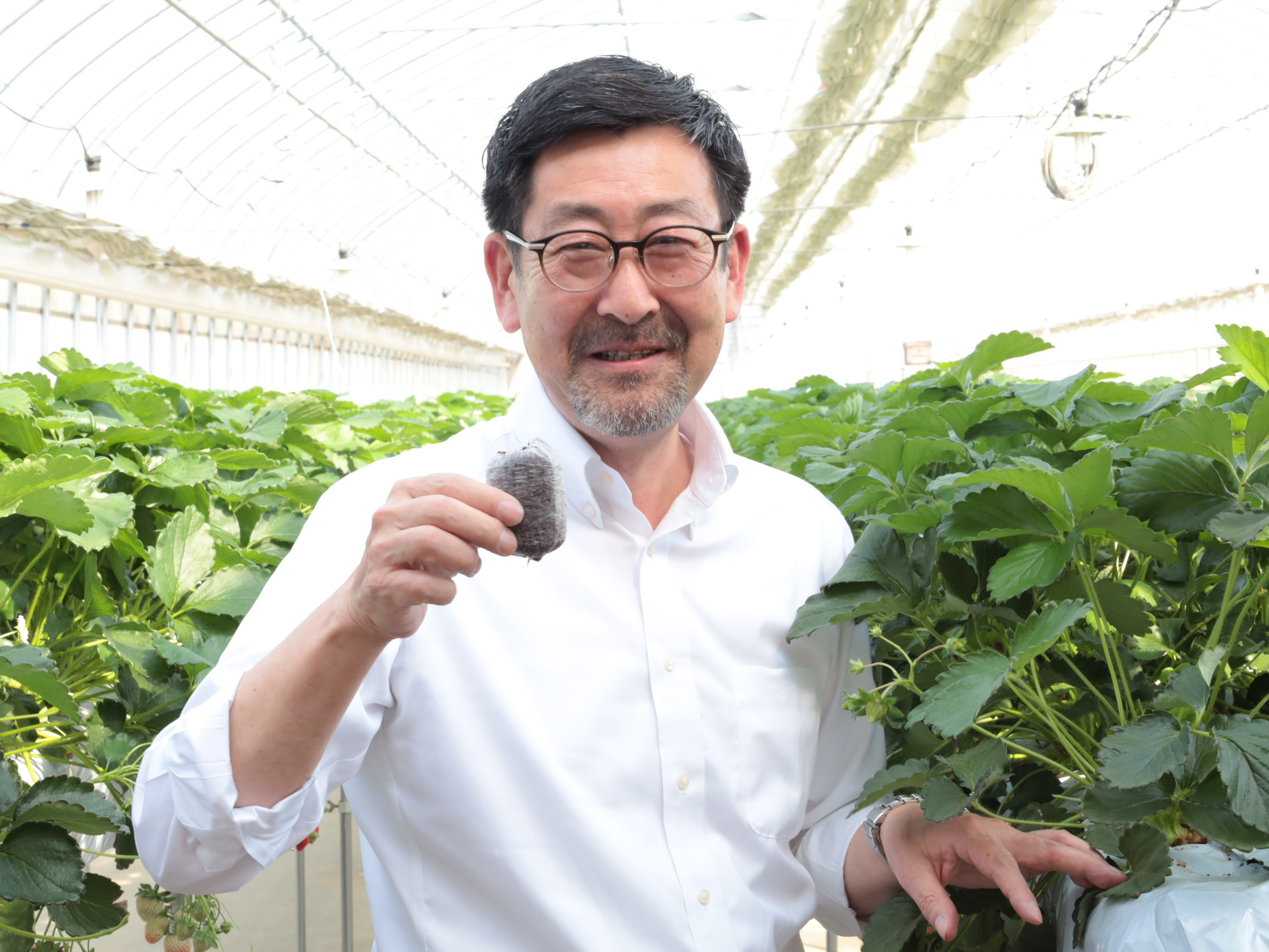 イチゴの採苗に好適な培養土。根鉢ができにくく、苗の根の伸長・活着を早める!必要に応じて水で膨らませて使うので土入れ作業不要、保管場所の省スペースにも貢献!