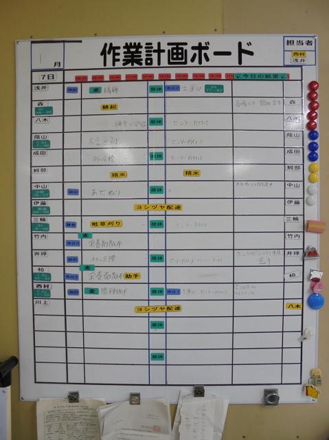 トヨタ生産方式で、現場をカイゼン!農業経営体ご自身で改善活動を進められるように、「改善の仕組みづくり」や「人材育成」をサポートするのが『現場改善』です。農業経営体様にトヨタの改善スタッフが訪問し、活動を支援いたします。たとえば、作業者ごとに作業を見える化した計画ボードを作成し、朝礼時など全員が集まる場で作業計画を情報共有。作業後に結果を全員で共有し話合うことで翌日の改善に繋げます。