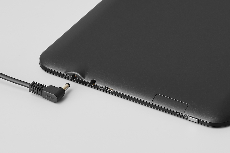 信頼性と使いやすさにこだわったシンプル設計の業務用タブレット。ガラスが割れにくい構造を実現し、高い強度を備えたディスプレイ「Dragontrail® PRO」を搭載。落下、加圧の繰り返しなど業務の現場で想定される様々な耐久項目を独自の厳しい評価でのチェックを実施しています。充電用コネクタには、micro USBコネクタに加え、より大きく、高い強度を持つDCコネクタを採用。取り付け部分の設計を工夫し、充電コネクタが破損しにくい構造です。
