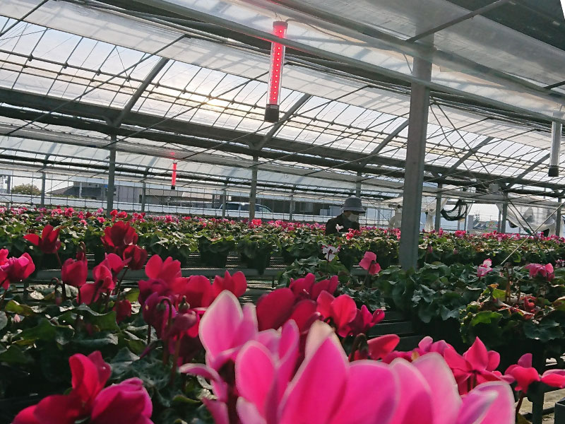 「アザミウマを発見しても、防除作業よりも、どうしても出荷作業を優先してしまうこともあります。そうすると以前は、ハウス中にアザミウマが拡散してしまっていました。いまでは「モスバリアジュニアII レッド」を点灯すれば、アザミウマが葉裏から出て行かないため、落ち着いて農薬散布ができます。以前よりも農薬散布回数、農薬使用量ともに減っています。また、アザミウマが減ってからは、菌やベト病の被害も少なくなっています」。