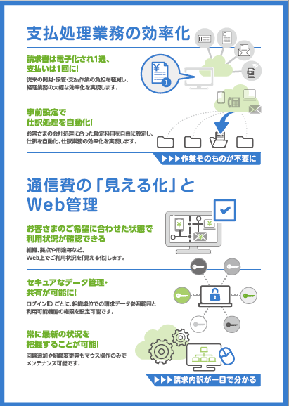 通信会社から毎月バラバラに届く請求書をお客さまに一括でご請求する“立替スキーム”を採用し、経理業務を効率化!(提供:NTTファイナンス株式会社)
