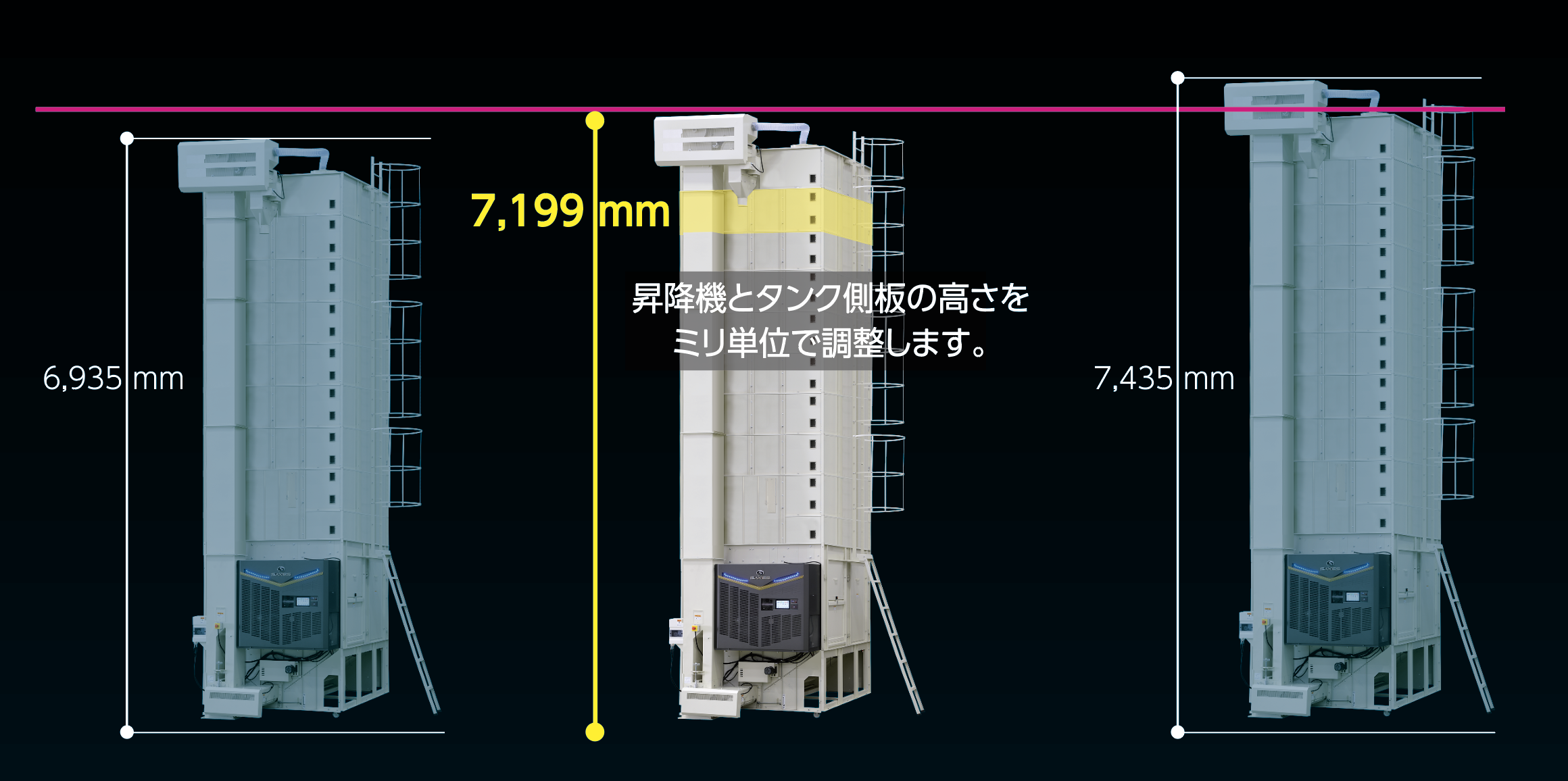 ミリメートル単位で、乾燥機の高さをお客様ご指定の高さへ調整し、最短2週間で出荷することが可能です。お客様の設置場所を最大限に活用するため、タンク容量を最大に、高さの調整を行います。