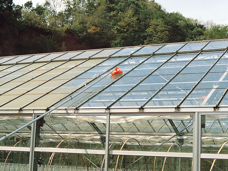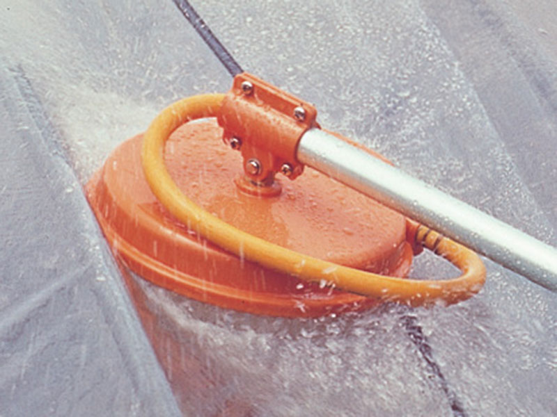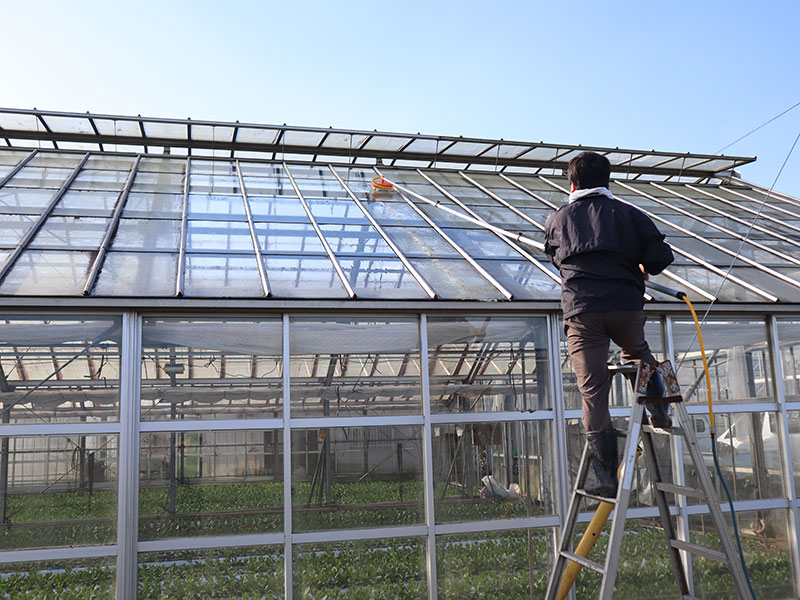 日照確保の天敵、ハウスの苔をキレイに洗浄! ハウスの洗浄・遮光剤落としに使える水圧回転式高速ロータリーブラシ洗浄機です。