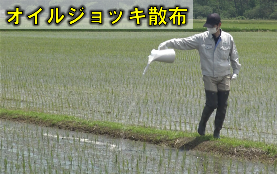 当社が開発した新規拡散型製剤「楽粒」により、1ha圃場でも中に入らずに散布することができ、効率的な散布作業を実現します。無人航空機による散布等も可能です。