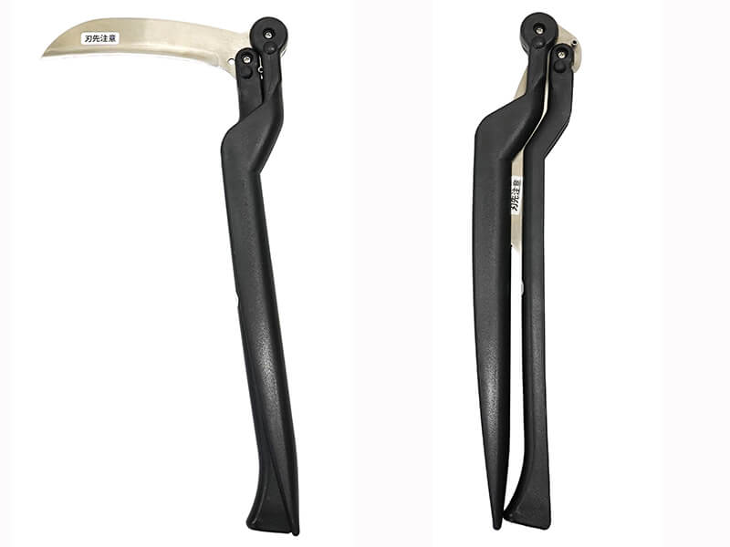 クルッと刃を出して、クルッとしまえる独自の収納構造により、わずか1秒で開閉可能。刃に触れず出し入れできるため、移動や収納時も安心。「刃がむき出しで不安」という悩みを解決してくれる。刃物部には、錆びにくく切れ味抜群のステンレス刃を採用し、茎の太い雑草や稲もスパッと軽やかにカットできる。両刃のストレート刃のため、左利きの方も利用可能。