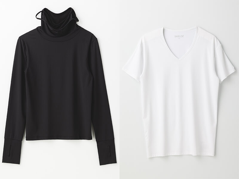 暑熱環境での農作業を快適に支える高機能性インナーブランド『SHIELDÉ(シルデ)』。特許取得技術を用いたプリント加工による放熱・遮熱機能で、長時間の屋外作業でも衣服内部に熱がこもりにくい。フェイスカバー付長袖シャツは日差しをしっかりガードし、Vネック半袖シャツは軽さと動きやすさが魅力である。熱を逃して、熱を入れない。作業時の負担を軽減する新感覚のインナー。