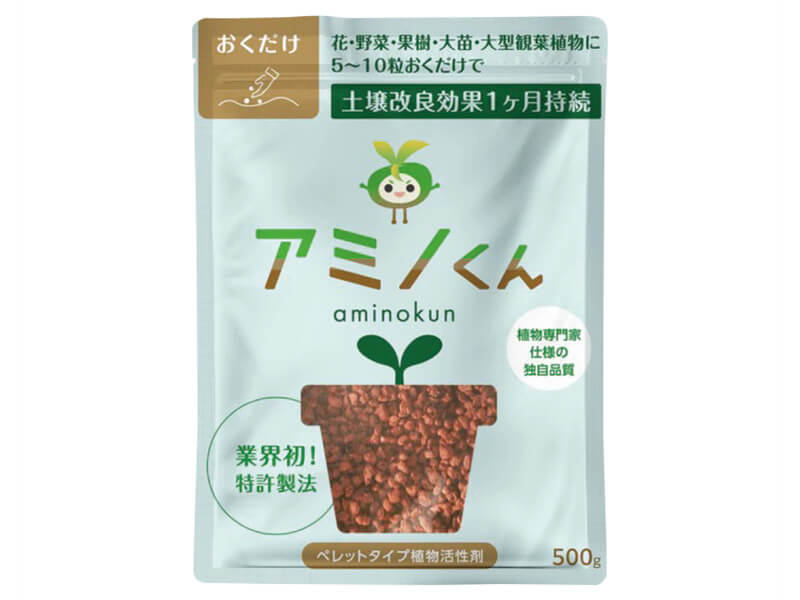 アルケーは今年、植物活力剤「アミノ家族」シリーズを発売。本製品も、自然由来の素材でできた、環境にも人にも優しい製品だ。