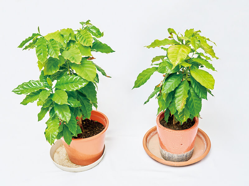 効果を検証! 左側が「アミノ家族」シリーズを与えて育てた観葉植物