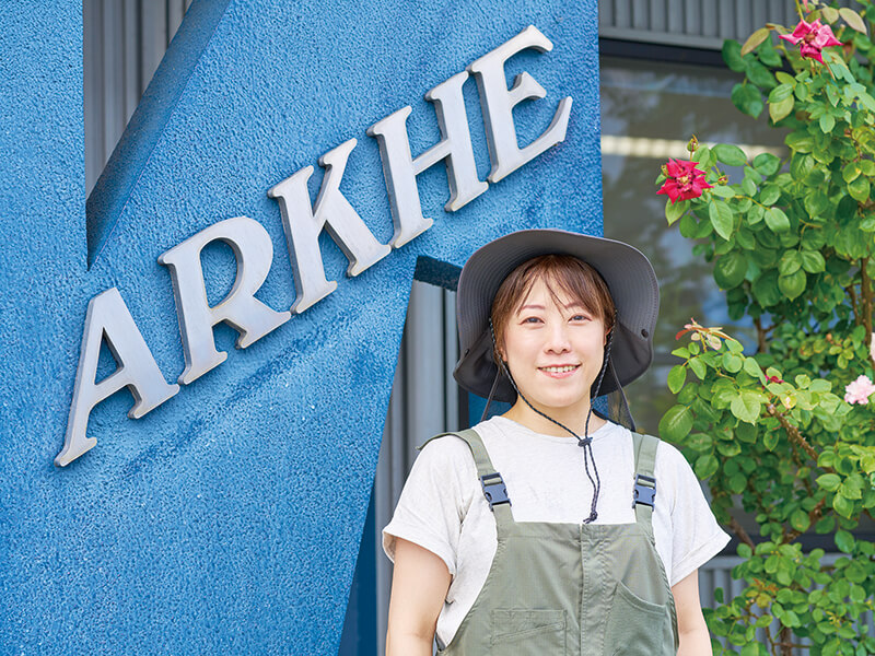 アルケーのECO事業部・部長の前田圭子さん。「『アミノ家族』シリーズは、アミノ酸の力で土中の微生物を増やし、土壌と植物の活性化を図るエコな商品。自然由来の素材のみで製造しているのも、イチオシのポイントです」。