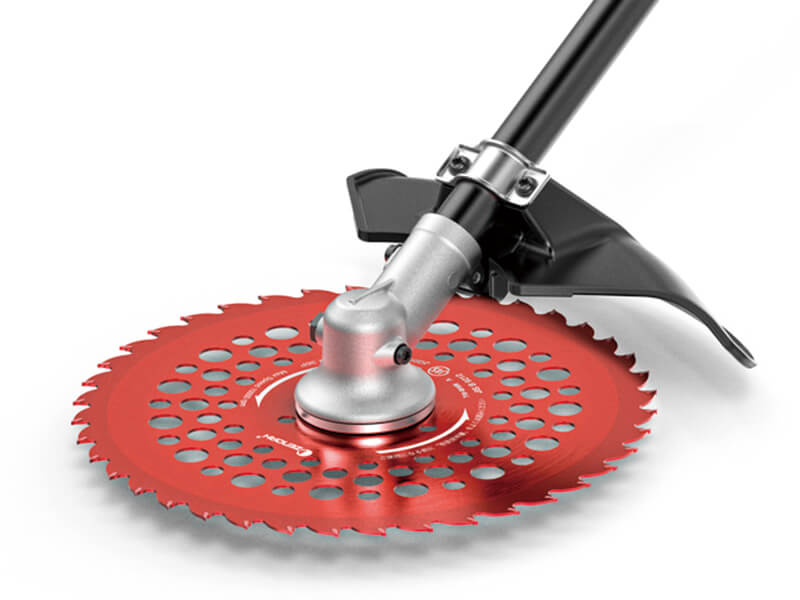 基本は金属刃(チップソー)である。圃場や畦畔の雑草には硬いものも多く、耐久性と切断力、経済性を考えると最も汎用性が高い。近年はバッテリー式との相性を高めるため、低抵抗タイプや軽量タイプの金属刃(チップソー)も登場している。モーターへの負荷を抑えつつ回転を維持できるため、バッテリー消費を抑えながら作業効率を確保しやすい