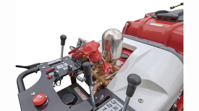 ポンプには耐摩耗性に優れた共立セラミック動噴を採用。薬剤による腐食や摩耗に強く、安定した高圧噴霧を長時間持続できる。高耐久性を誇ることから、農業生産現場で安心して使える機械として高く評価されている。
