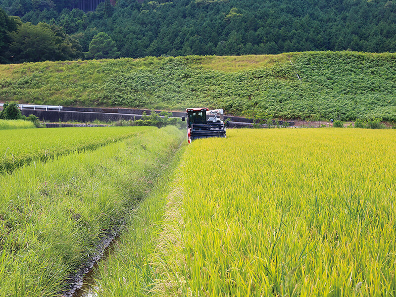 「にじのきらめき」の一期作目の収穫風景。