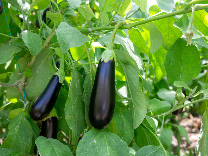 ナスは高温で雨が多いインド東部原産なので、水分を好み、乾燥には弱いです。水分不足になると、果皮が硬くなる「石ナス」になります。敷きわらやマルチをし、乾燥が続いたときは水やりをします。