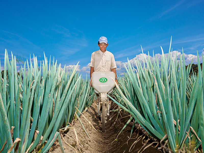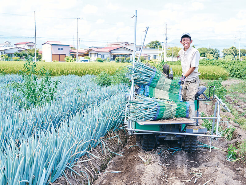 それまで阿久津家の農園では米のみを作っていたが、阿久津さんは就農後、新たな挑戦としてネギの栽培を開始。現在は、約3.4haの畑をほぼ一人で管理し、複数のブランドネギを手がけている。