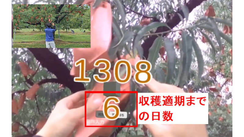 桃の収穫は最適な時期がわずか2日ほどと短く、見極めが難しいのが課題だ。そのうえ、被せた袋を開けて熟れ具合を確認する作業の負担も大きい。「モモとろう」を使うことで、初心者でも採りごろが分かり、作業時間も25%削減できるという。