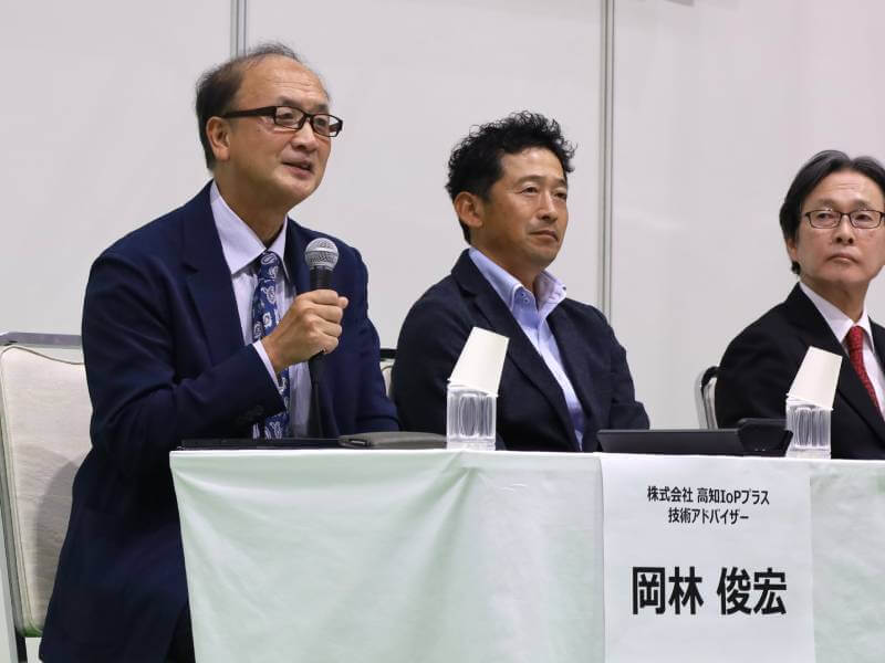 普及の立場から登壇したのは、高知IoPプラスの岡林俊宏さん。「1人のエースより、100人が1歩前へ進む普及」を信条に、100戸単位での実証と失敗を含めた情報共有を重ねてきた経験を紹介した。高知県では農家自らが野外で土着天敵を採集・増殖し、施設内に生態系を組み立てる文化が根付き、天敵利用が教科書にも掲載されるまでに至ったという。